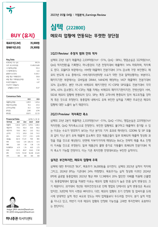 메모리 업황에 연동되는 뚜렷한 장단점 - 하나증권